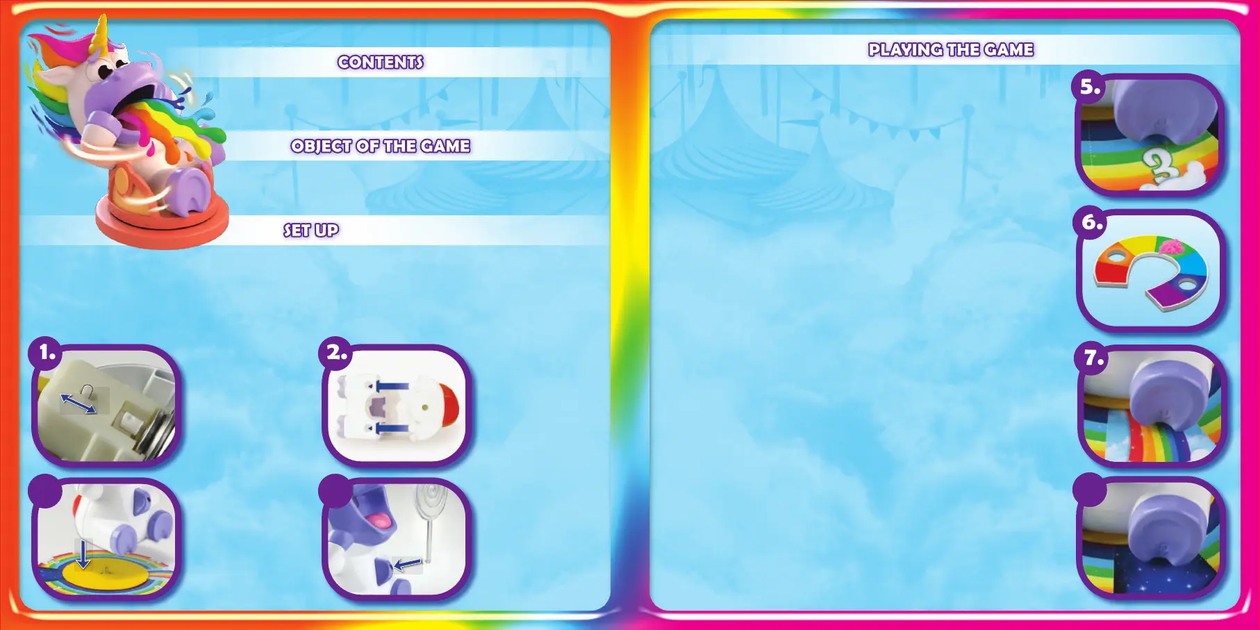 1 Unicorn, 1 Spinner Card with Base, 4 Rainbow Cards,
