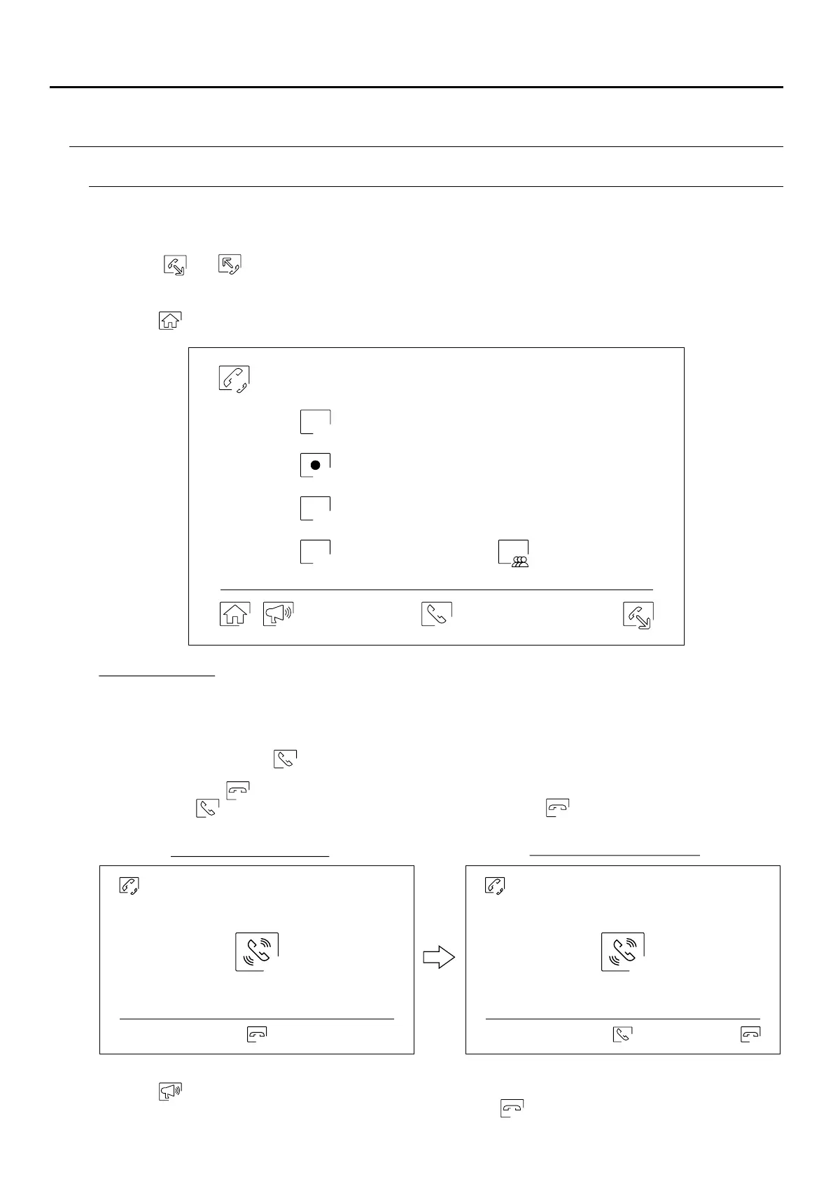 be terminated, and the door panel call will be received on the corresponding monitor.