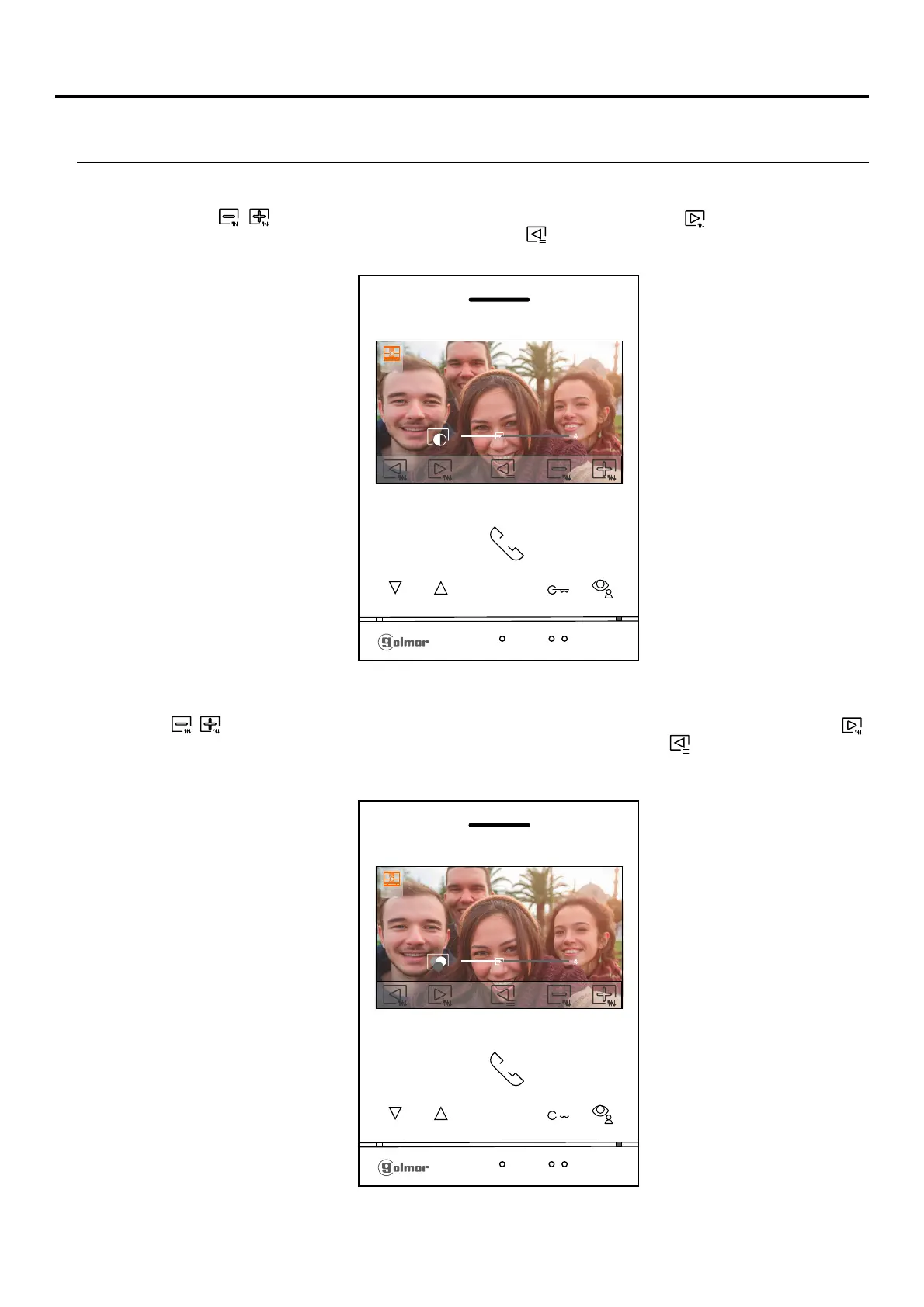 icons / . To access the monitor communication volume control, press the button below icon .call tone /