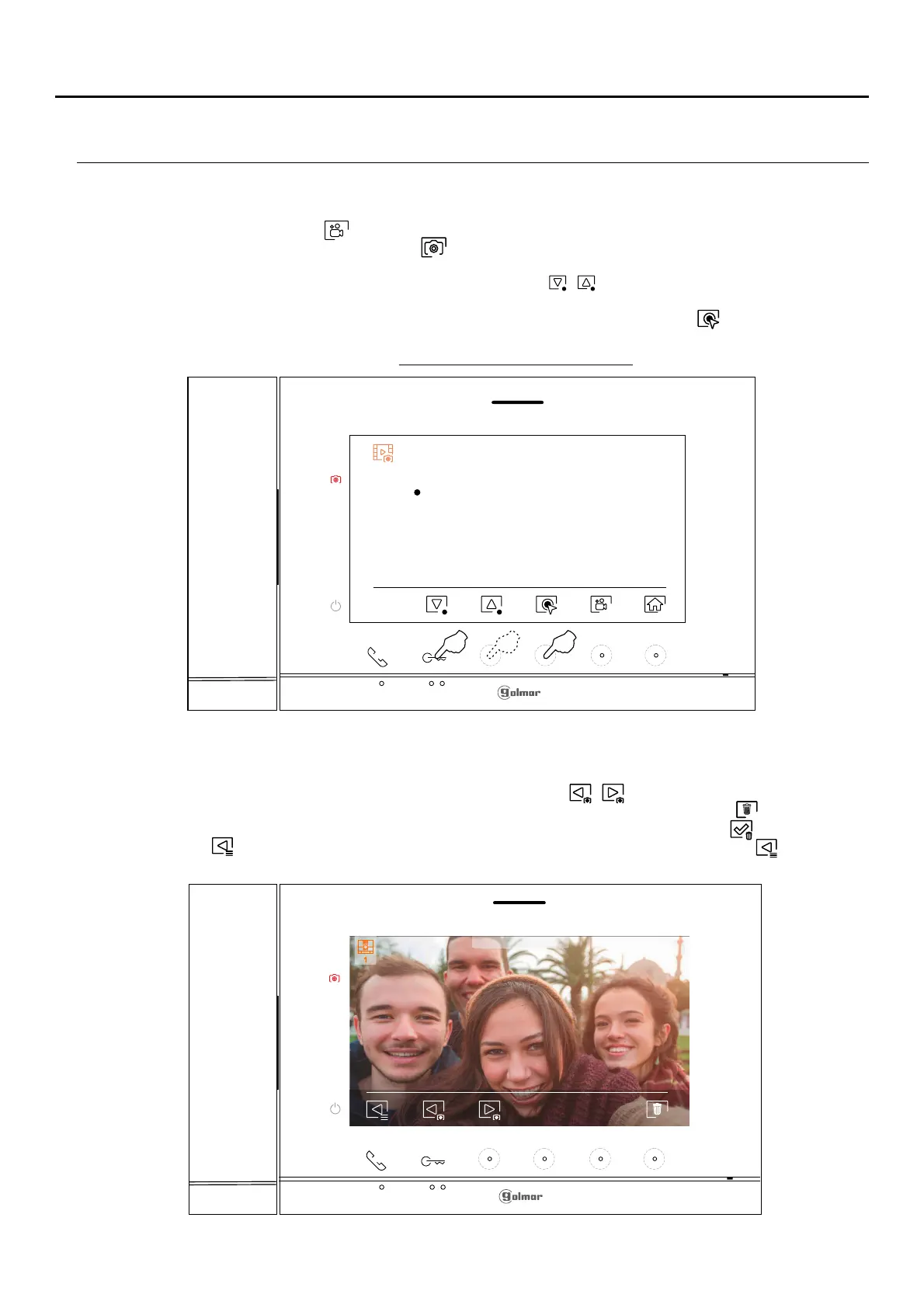 right of the screen. Press the button below icon to scroll the images/videos shown on the/ hidden button s /