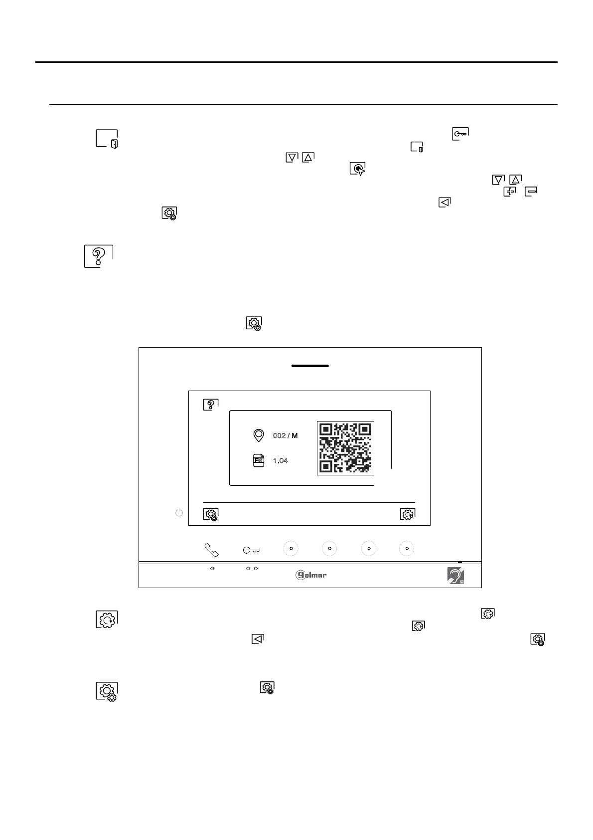 receiving a call from the door panel), go to the option with icon by pressing the hiddenbutton/