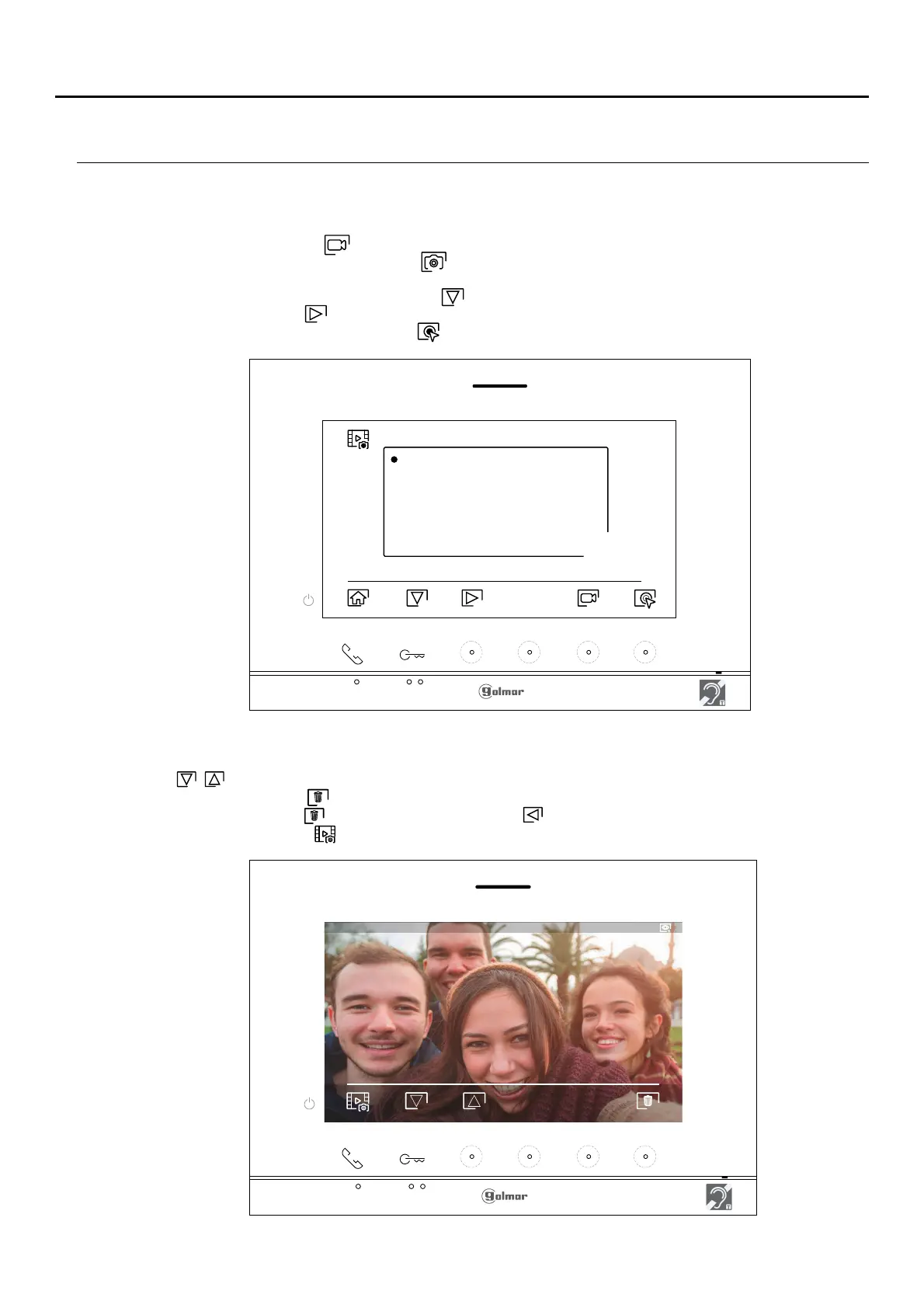 images, press the hidden button below icon . In the list of recorded images/videos, those that have not been