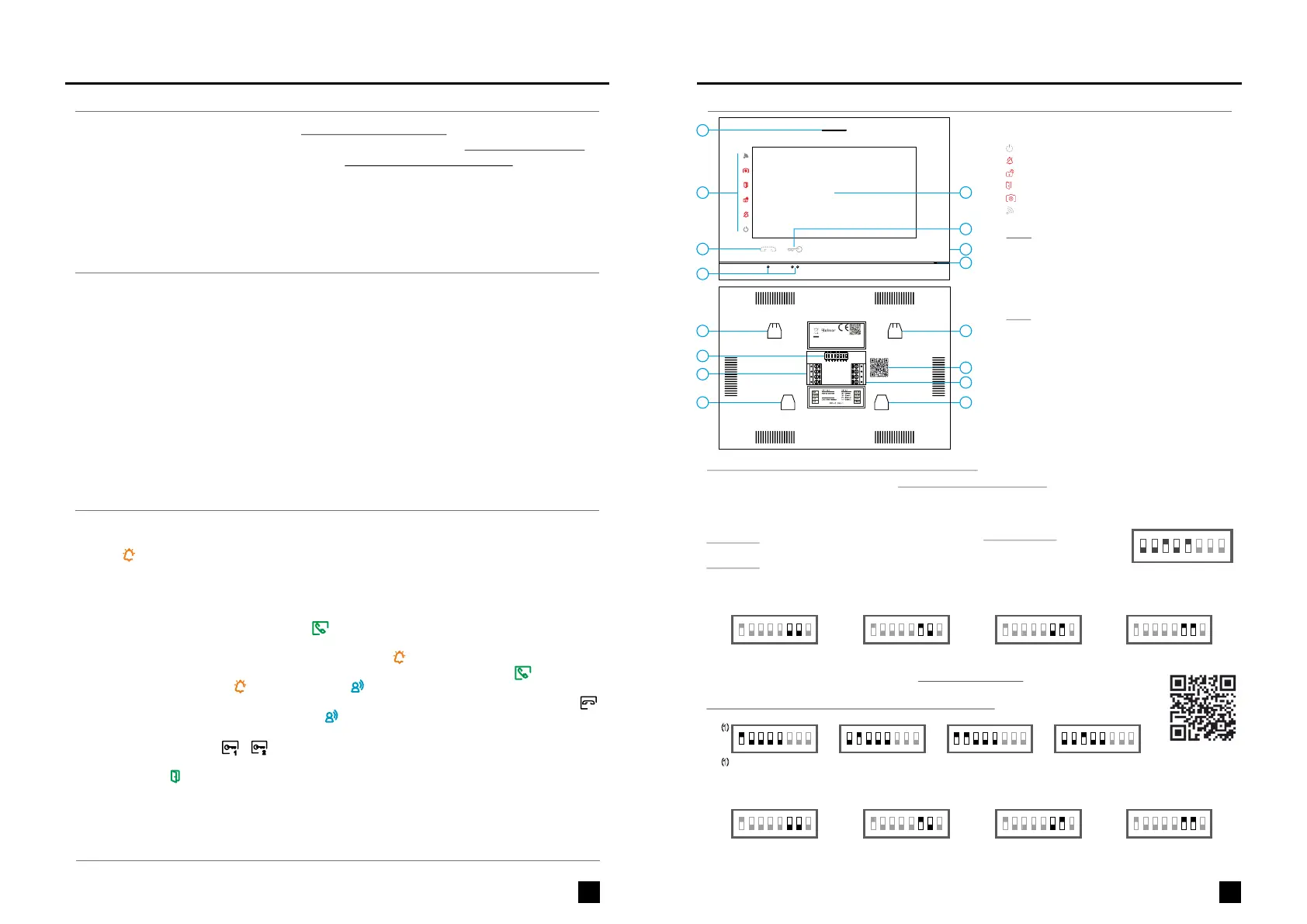 - Microinterruptores para configurar el código de llamada del monitor e indicar si es principal o secundario.