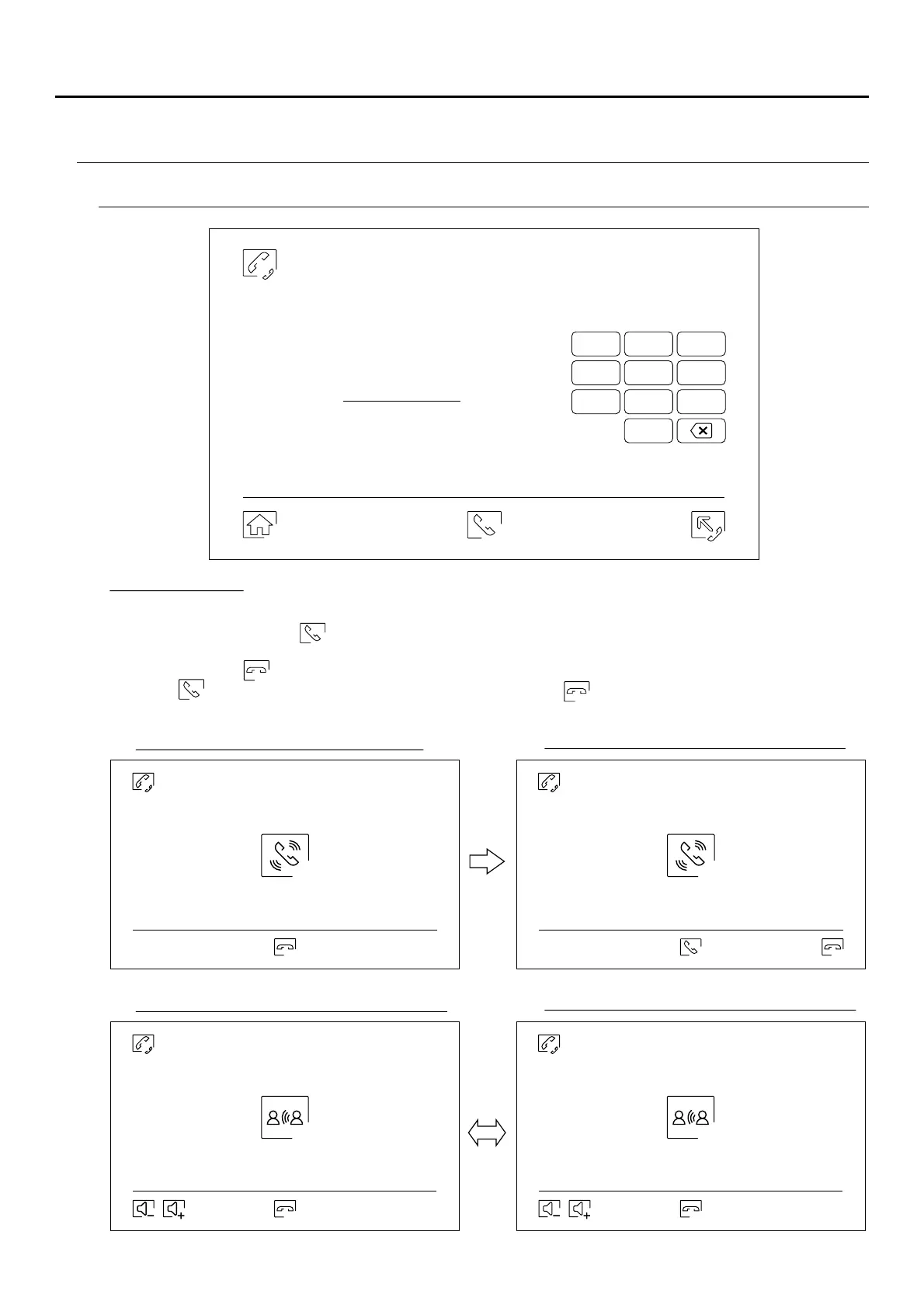 the apartment called will display the 'Incoming call' message, followed by the monitor making the call. To cancel the