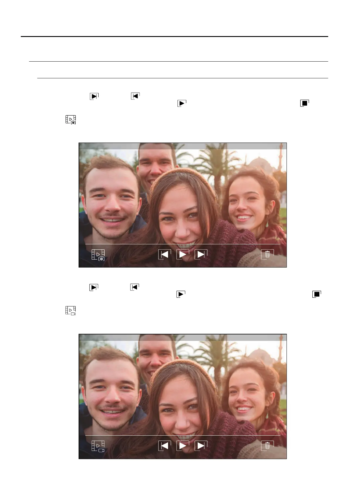which always requires your confirmation. Use icon to start playback of the video selected; press icon to