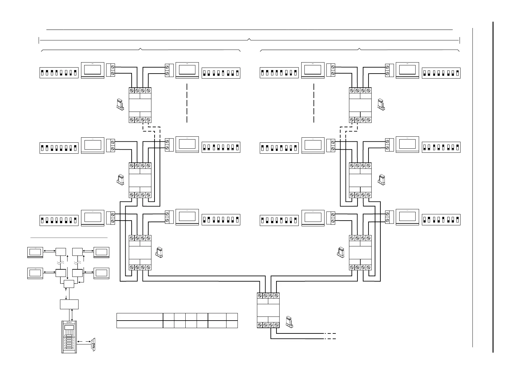 Video door with 32 ART 7/G2+ risers with 2L G distributors and Golmar d.c lock releaseentry system or ART 7 LITE/G2+ monitors, 2 D - 2+ .