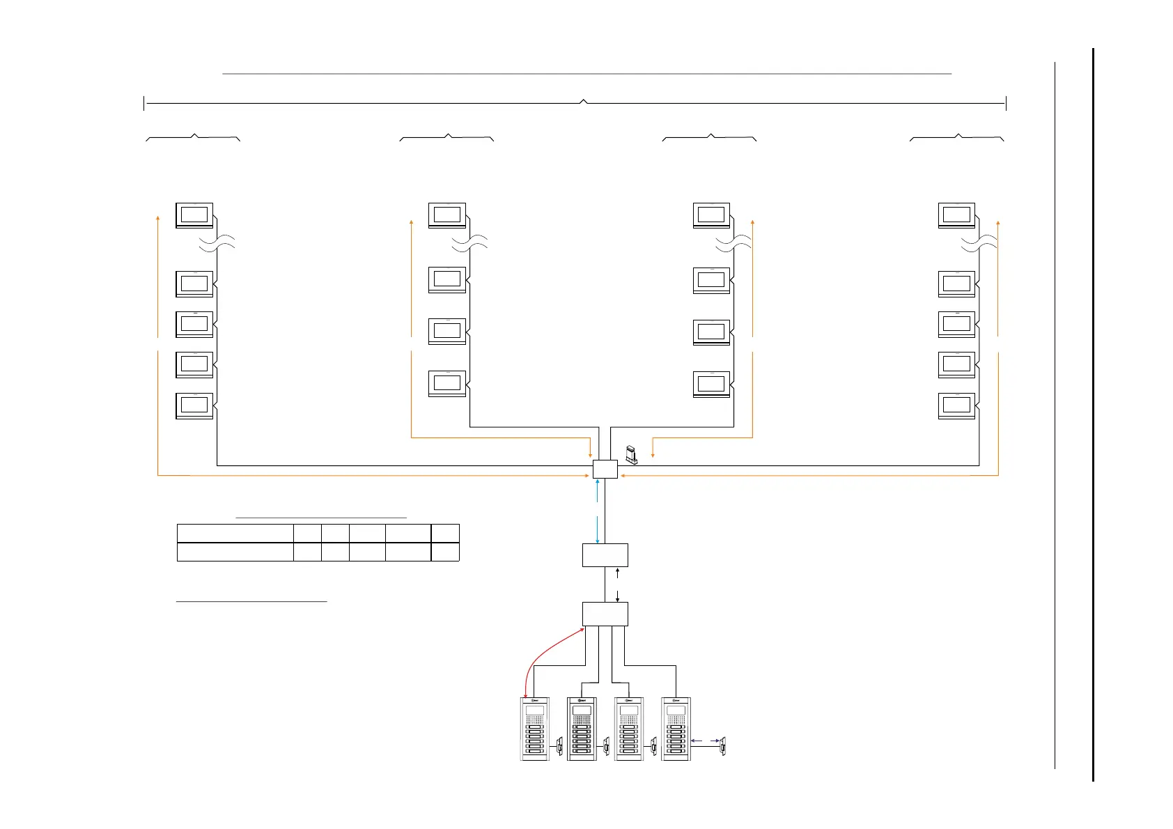 Installation with 1 building, 32 monitors, 4 risers without distributors mode and 1 access door panel."IN-OUT"