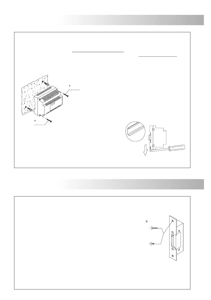 IMPORTANT: the lock release must be of 12V a.c. or d.c (see pages 73 to 76).