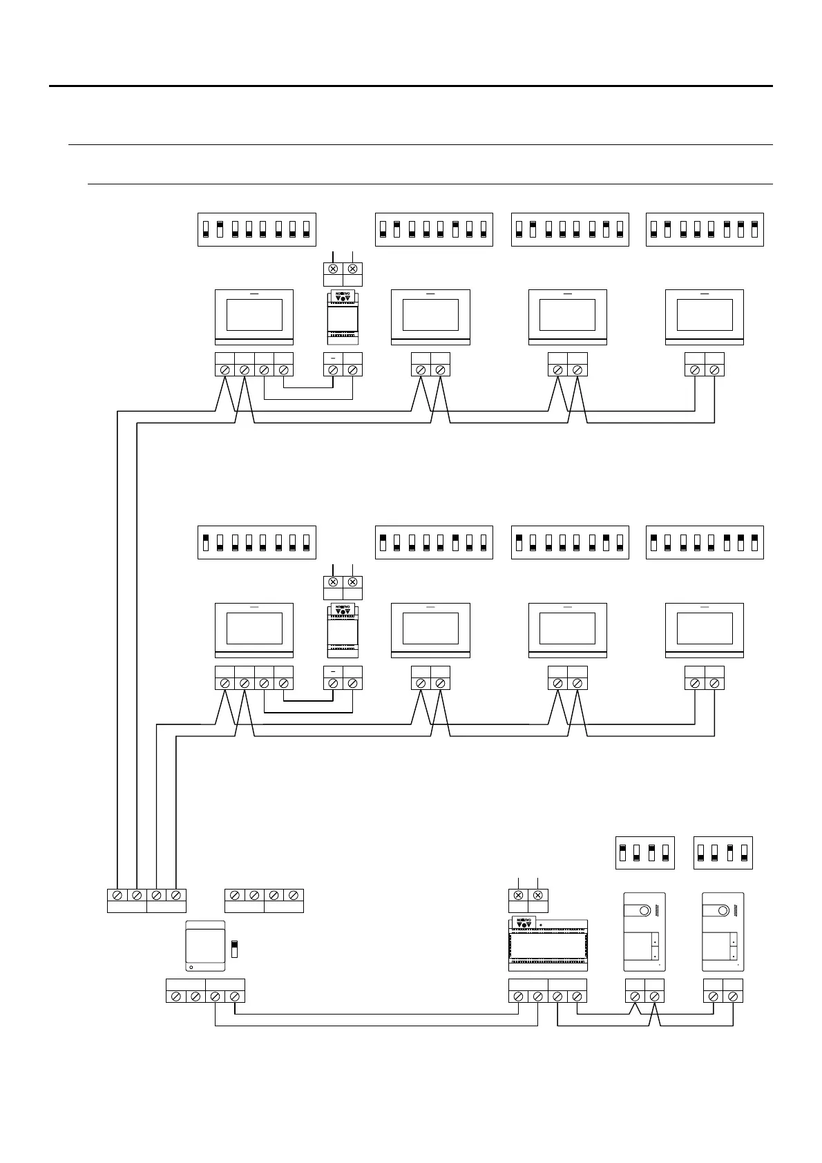 Two apartments with two access panels and up to four monitors in daisy chain connected
