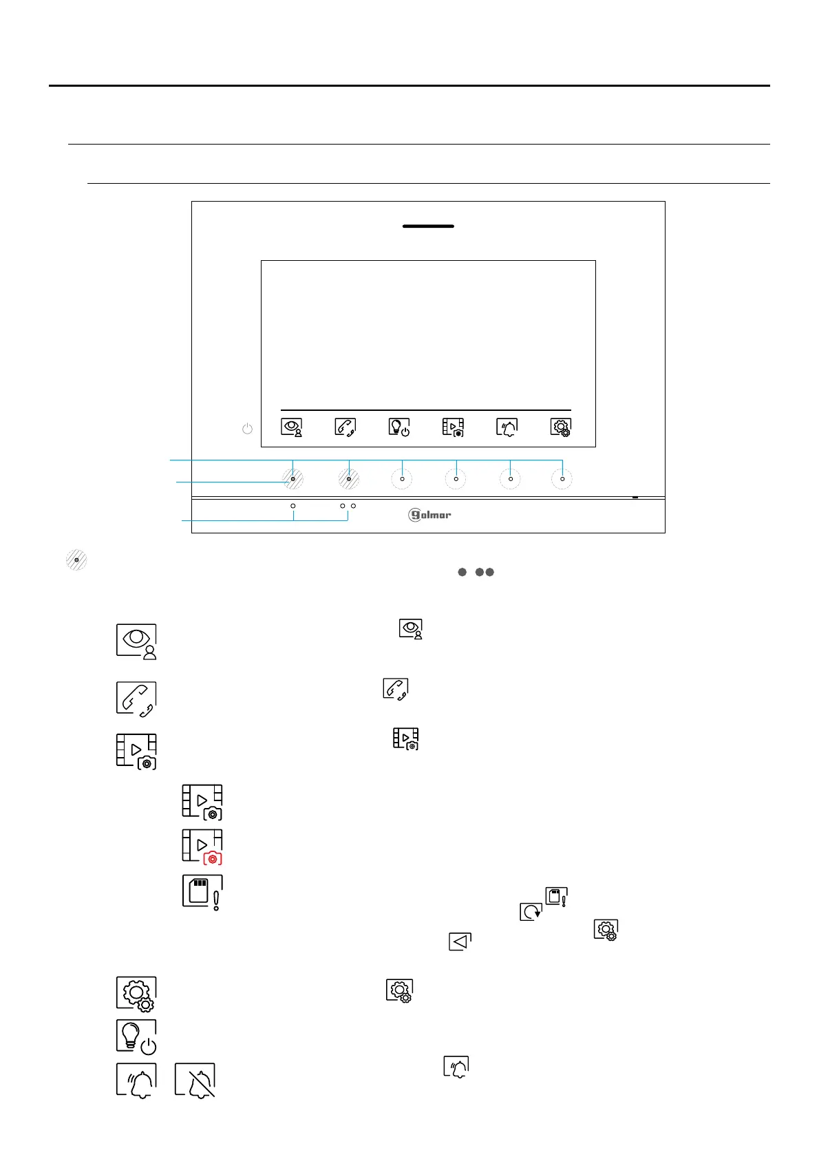Press the hidden button below icon to access the menu of the intercom between other monitors in