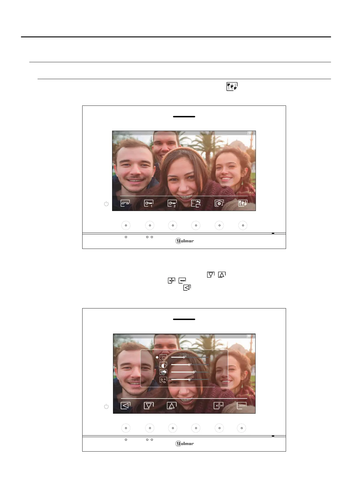 The following settings menu will then appear (brightness, contrast, colour and monitor in communication volume). Go to the