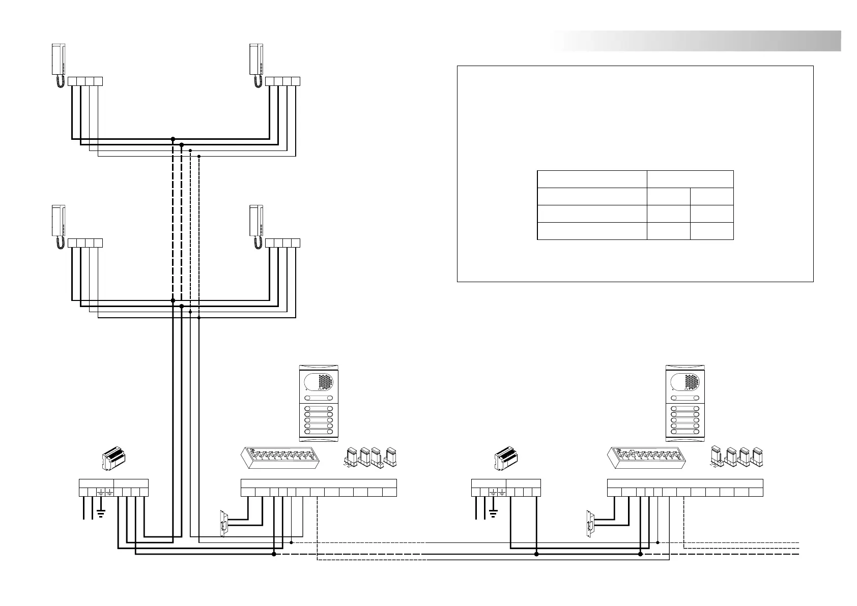 El esquema de instalación muestra el conexionado de un equipo de portero electrónico con