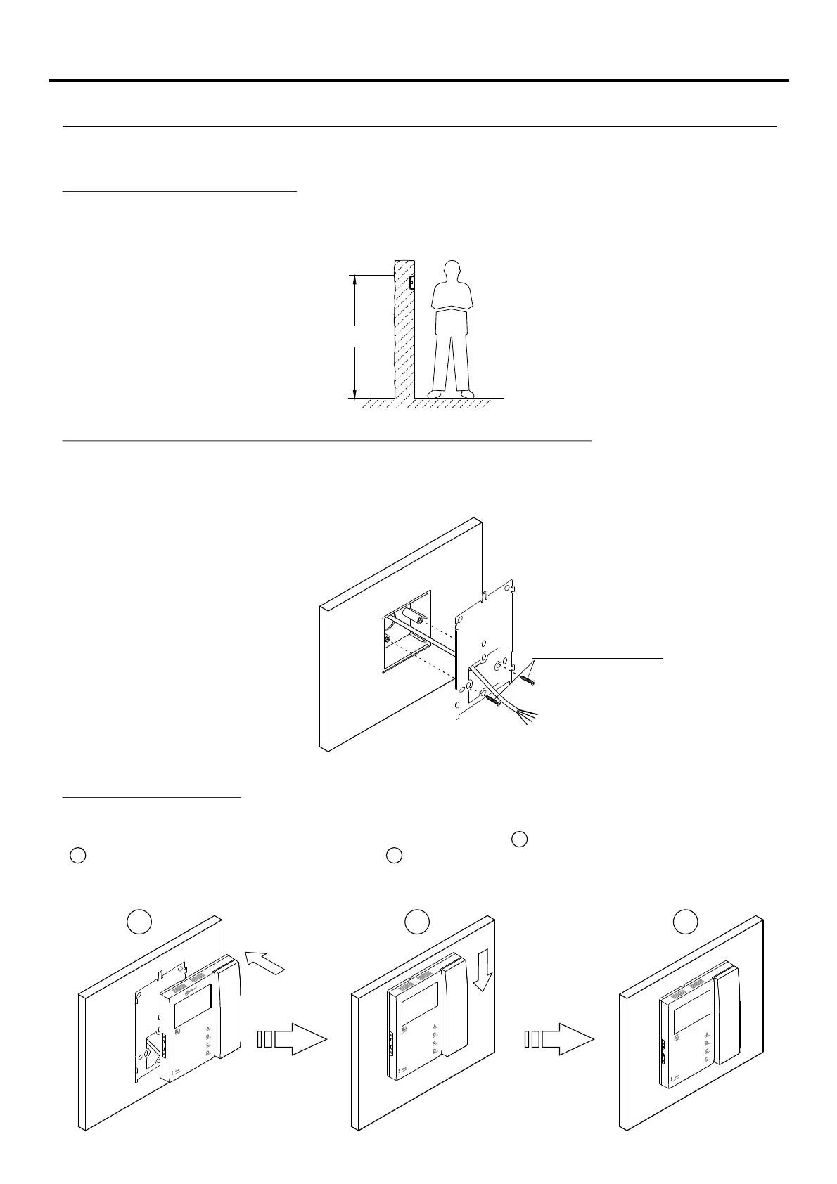 Fix the wall mounting connector of the monitor to the embedding box with the screws supplied.