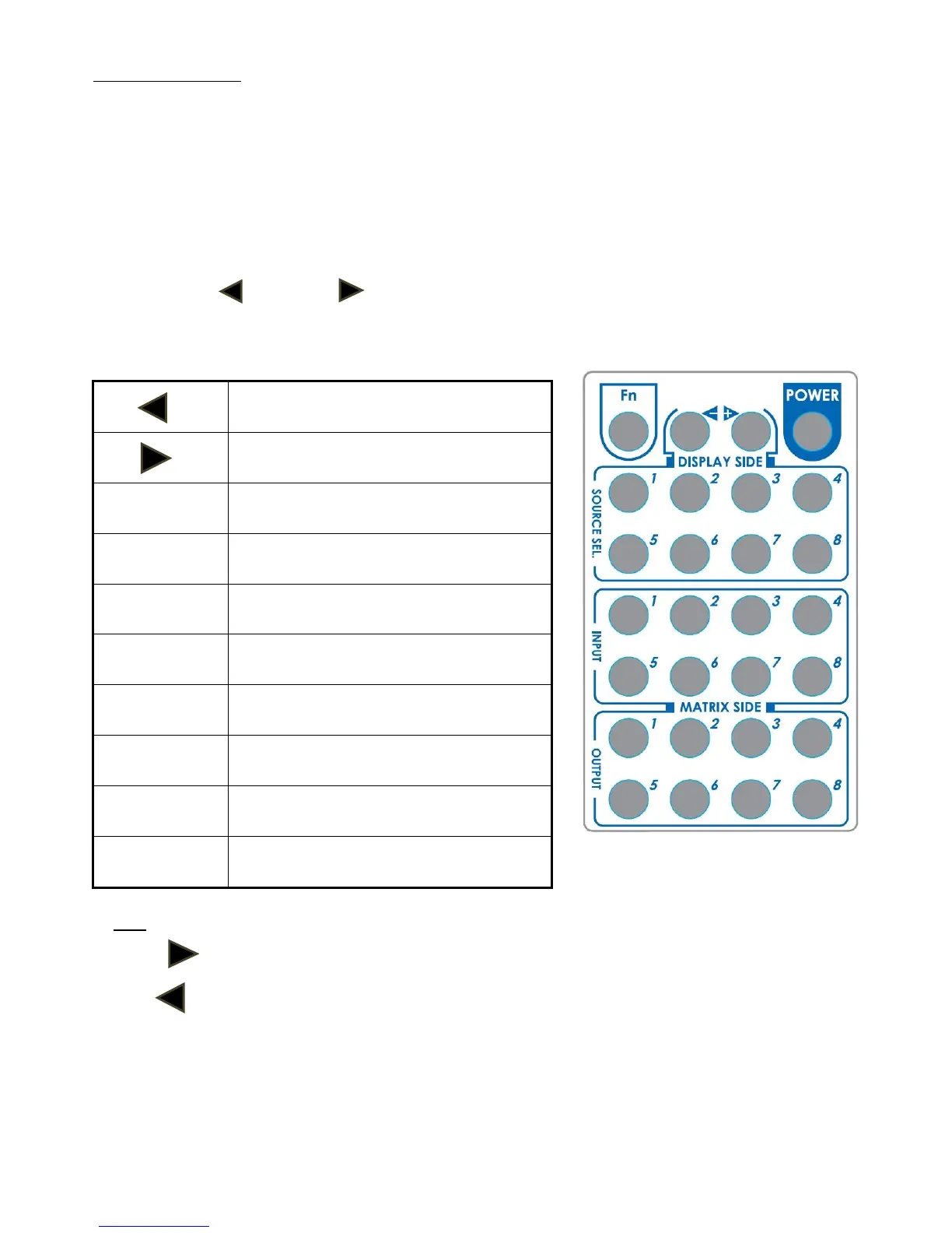 Right ( ) button to switch input source in ascending order (1, 2, 3, 4, 5, 6, 7, 8, 1, 2, ......)
