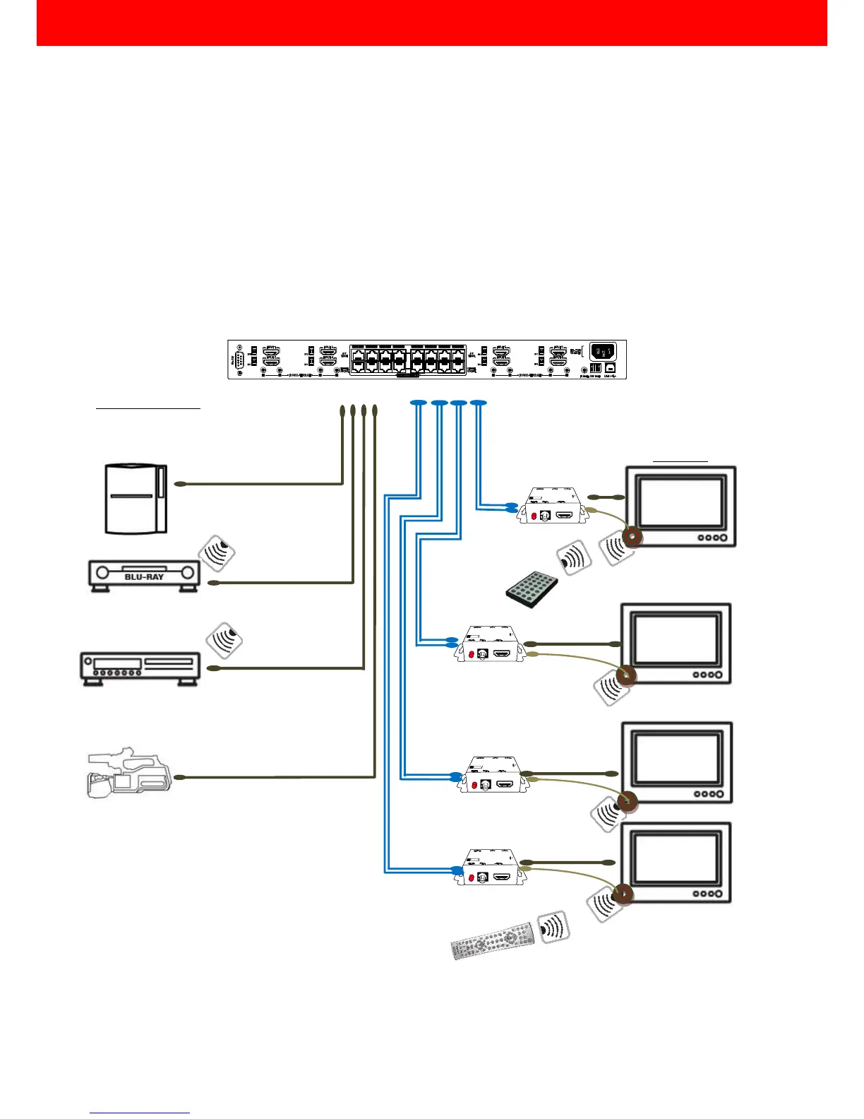 digital audio from any of the eight HDMI source devices to the remote displays at the same time. Through low