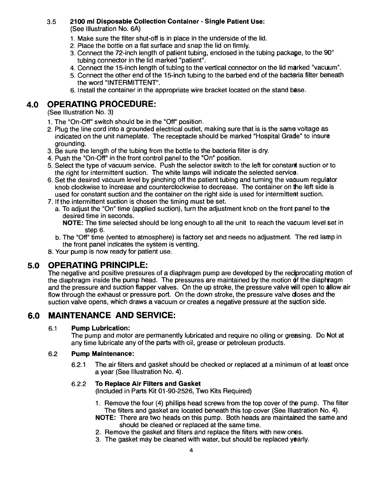 Gomco 6036 - Operating Procedure; Operating Principle; Maintenance and Service