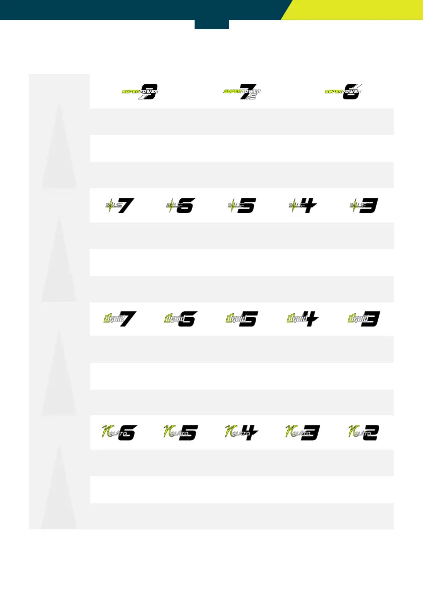 13 ▶ 25 nds/ktn 15 ▶ 32 nds/ktn 21 ▶ 44 nds/ktn 27 ▶ 57 nds/ktn 45 ▶ max