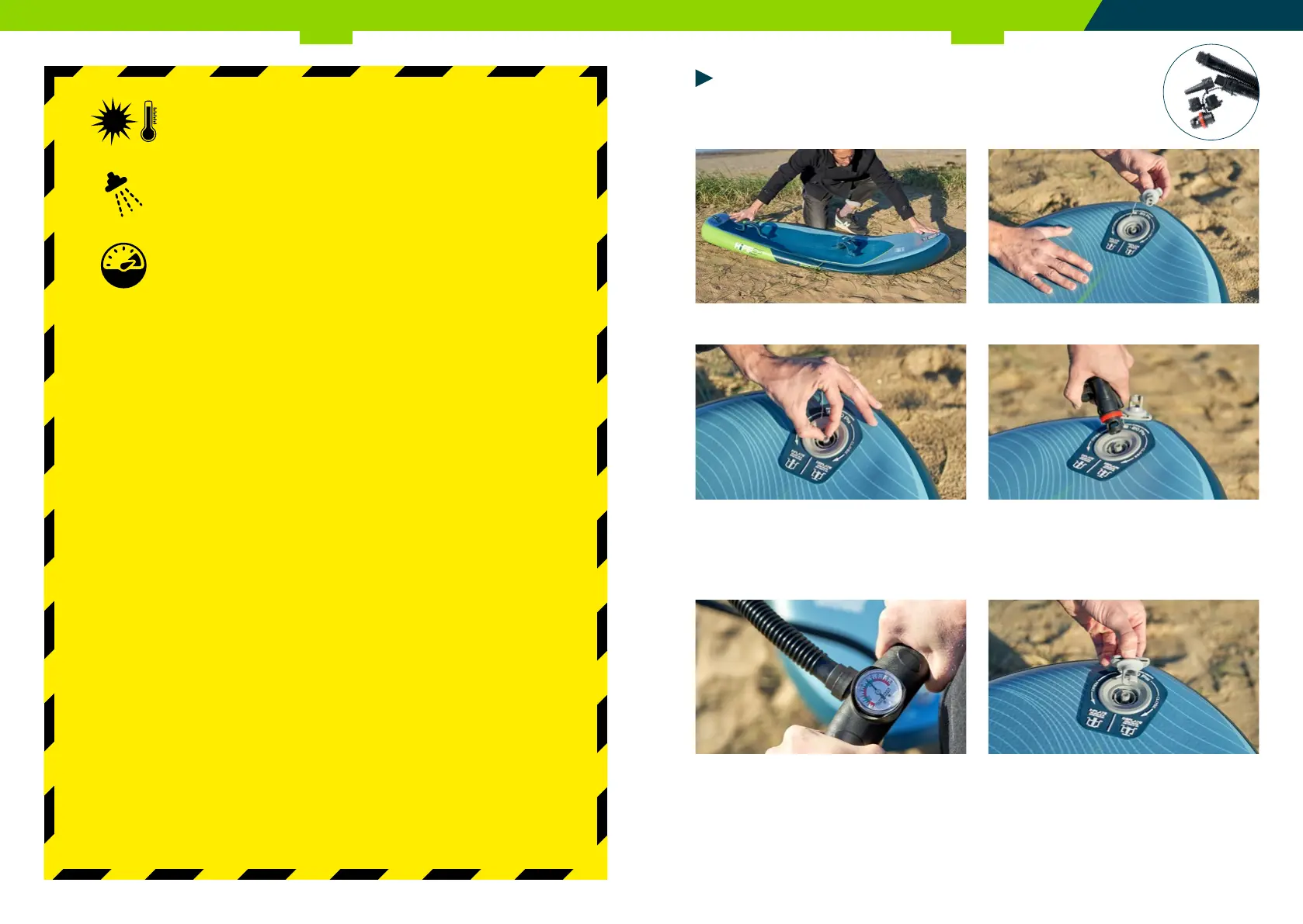 Gonez votre planche à l’aide de la pompe GONG fournie avec votre planche. Cette