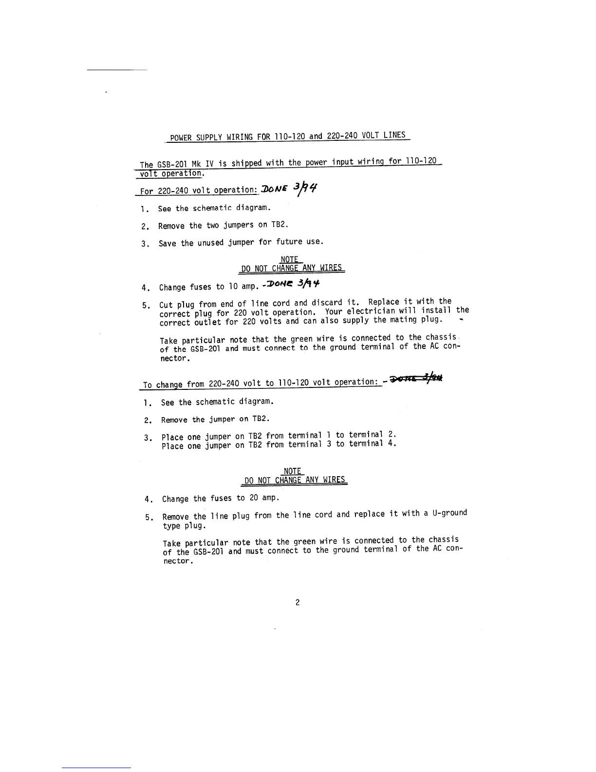 Gonset GSB-201 - Power Supply Wiring for 110-120 and 220-240 Volt Lines