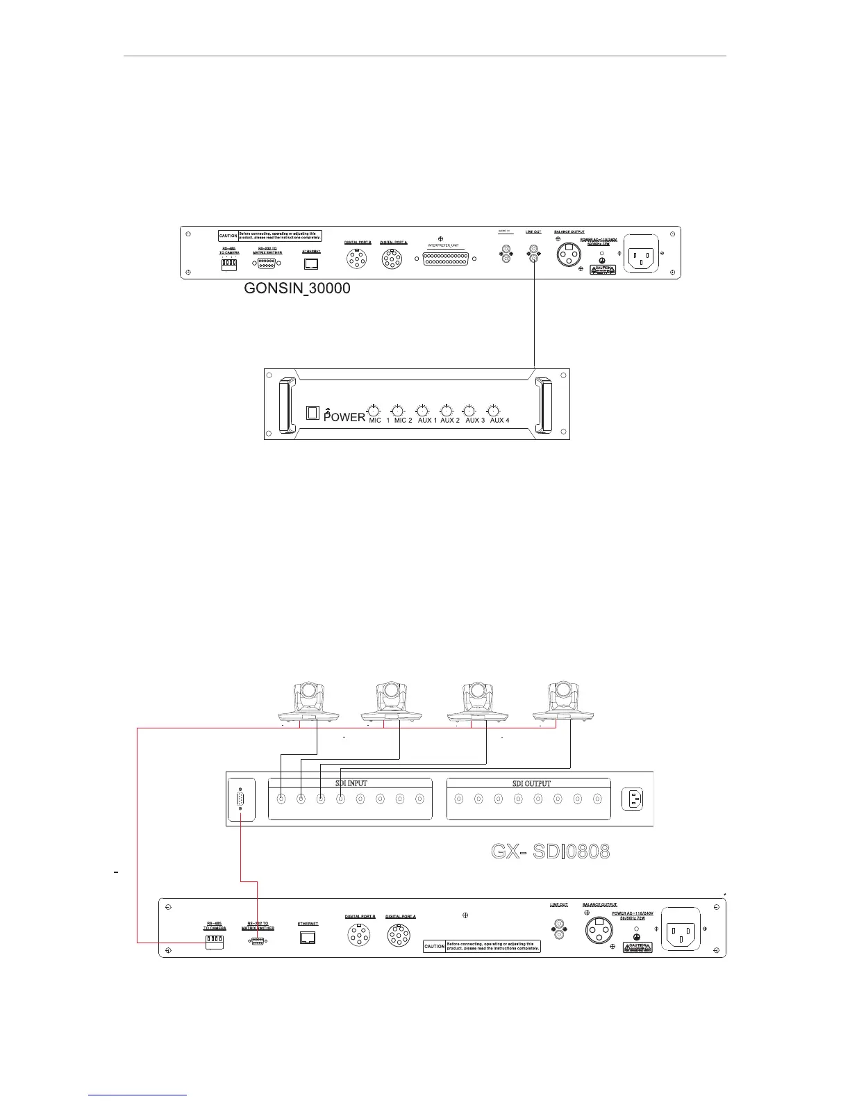 audio cable to connect the “LINE OUT” RCA interface of the server with corresponding interface of a mixer or an