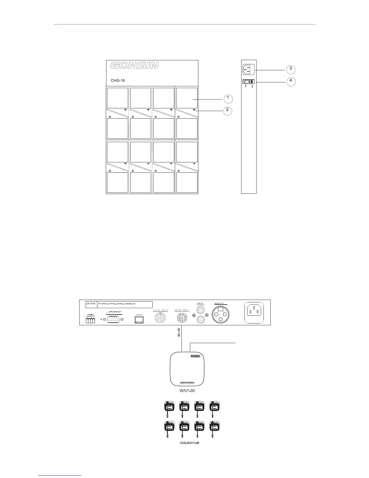 Notice: CHG-16 charging case can charge the DSC-3021 conference terminal. Don’t use it to charge other types of