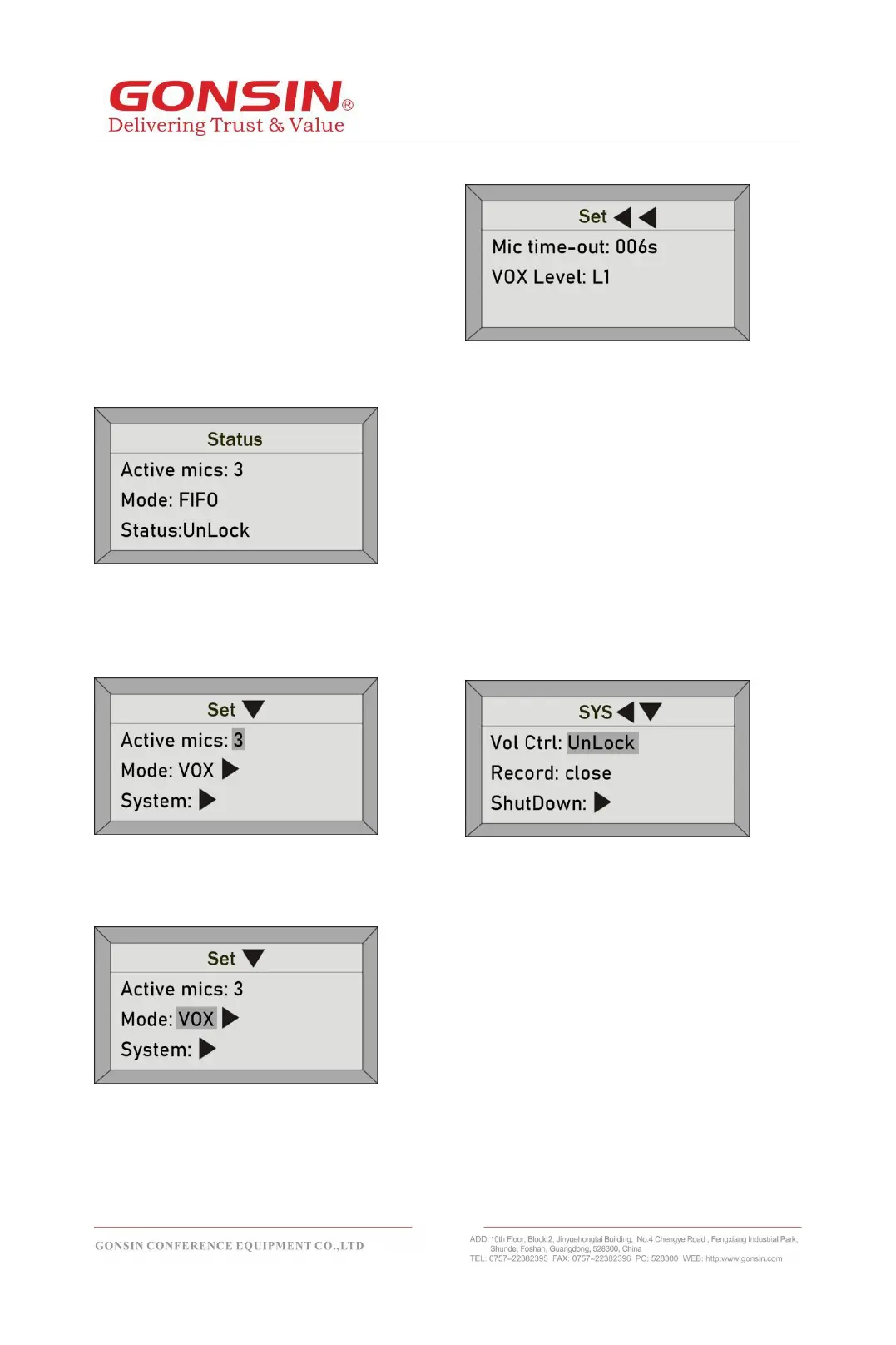 ② VOX Level: the sensitivity of all units are