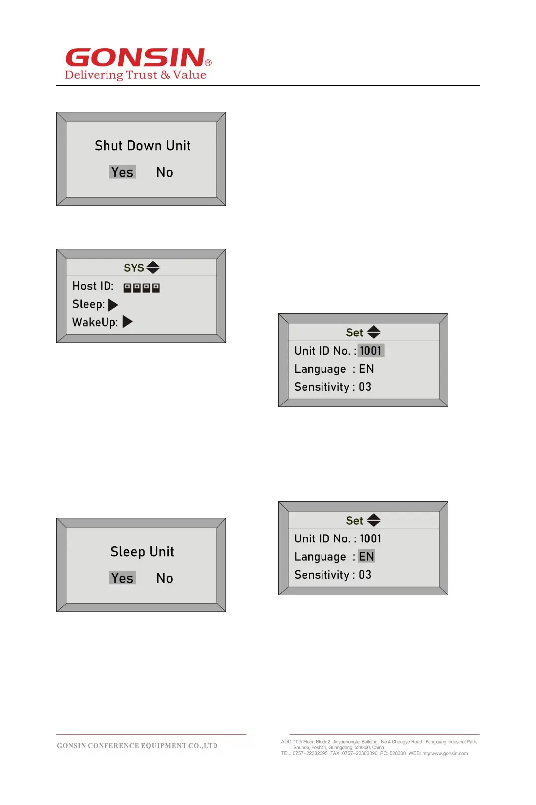 (5)Unit ID No.: select the "Unit ID No." setting