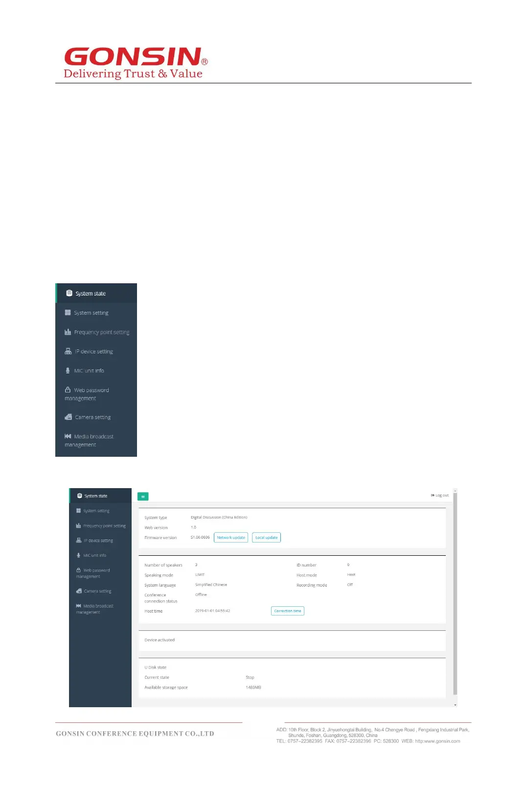 You can check the IP address of gonsin3000S host first (see 2.4.7 server setup and