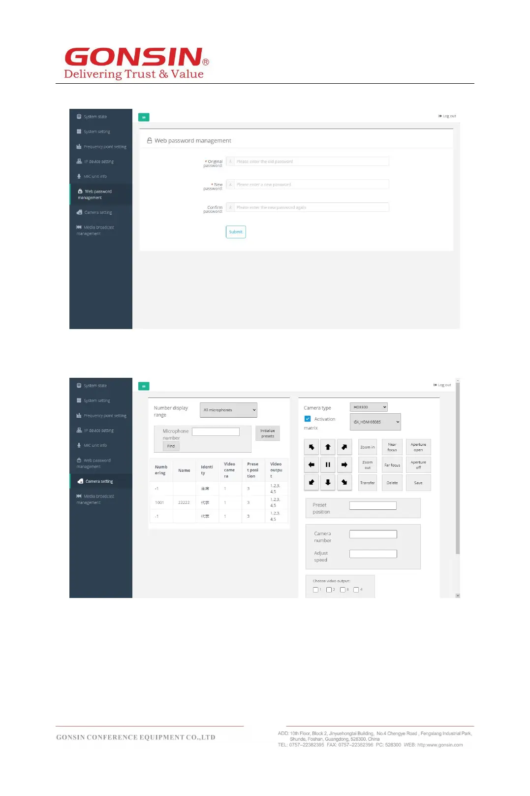 In the "Web password management" page, you can change the current Web password.