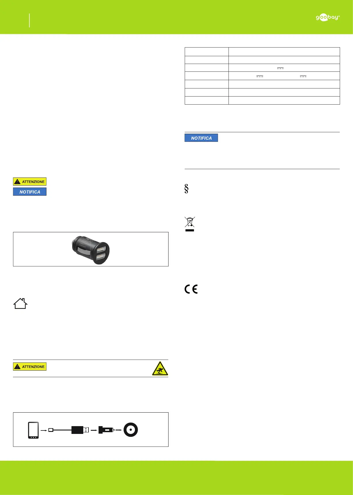 Questo prodotto è una caricabatteria per auto USB per la ricarica e il funzionamento