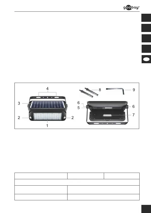 1 Lámpara LED 2 Sensor de movimiento