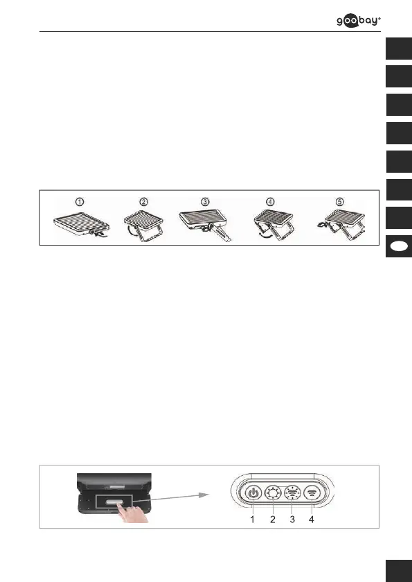 1. Slå på den soldrivna LED-vägglampan via manöverpanelen (7).