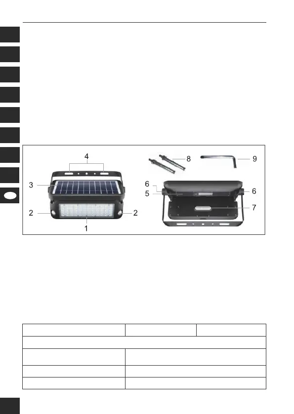 Produkt ten to kinkiet solarny LED o zasilaniu akumulatorowym, z wbudo-