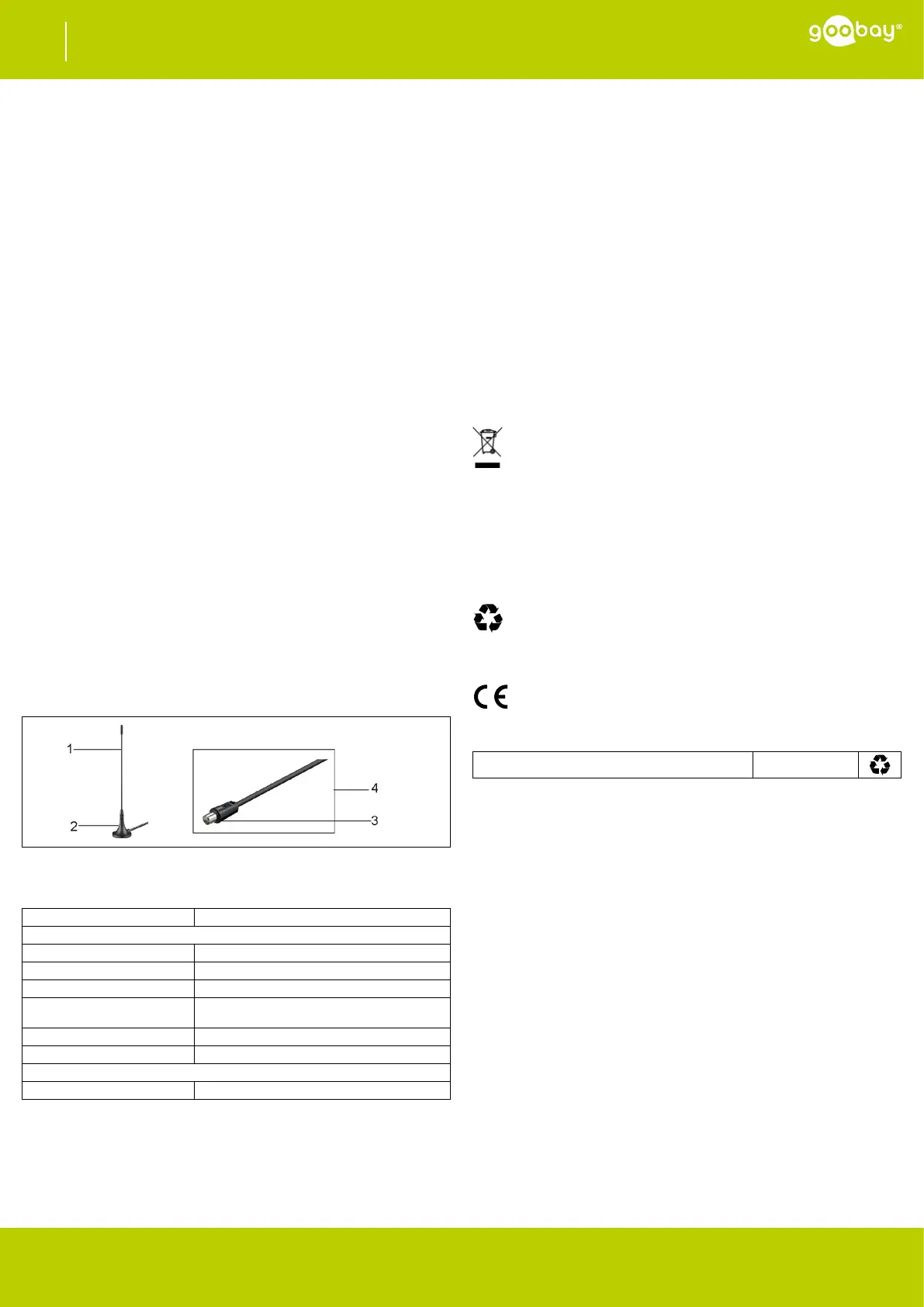 Produktet er en passiv magnetisk antenne til modtagelse af analoge og digita-