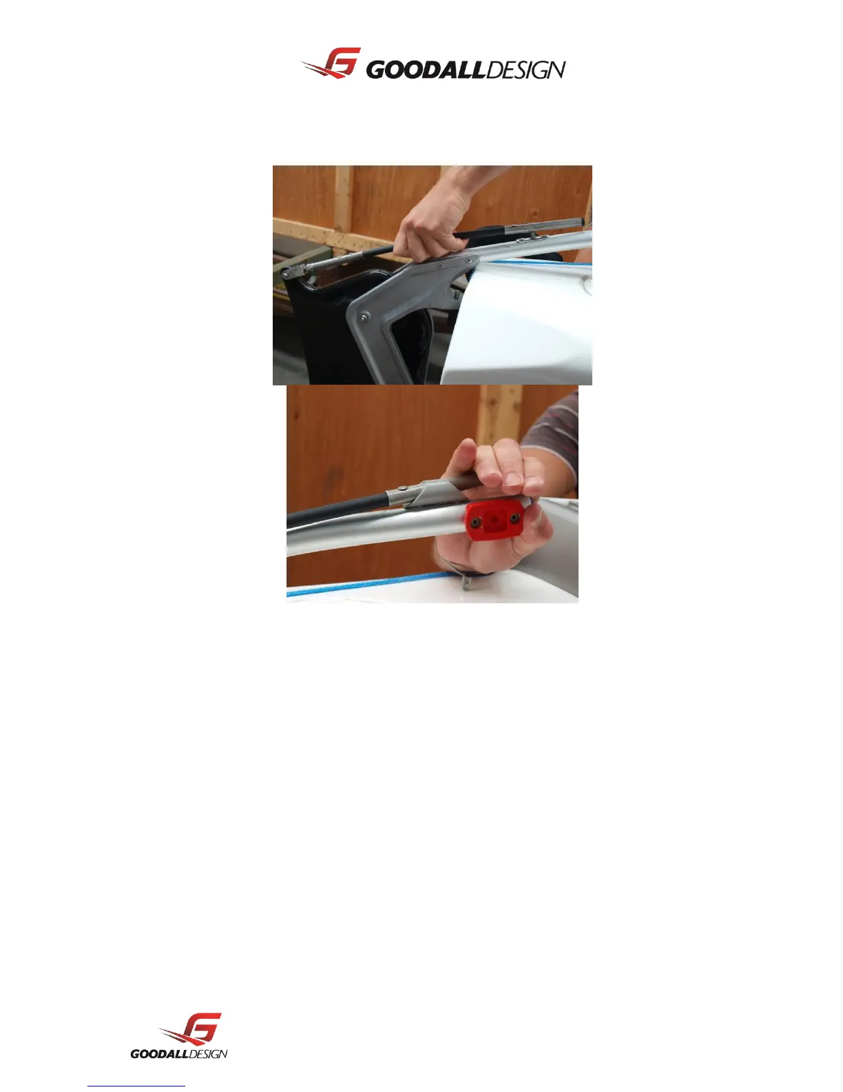 tramp deck. When sailing, pulling the strap will raise the board from either side of the boat.