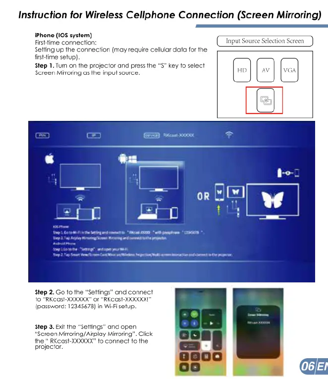 GOODEE W80 - Wireless Screen Mirroring Instructions; iPhone (iOS) Wireless Connection