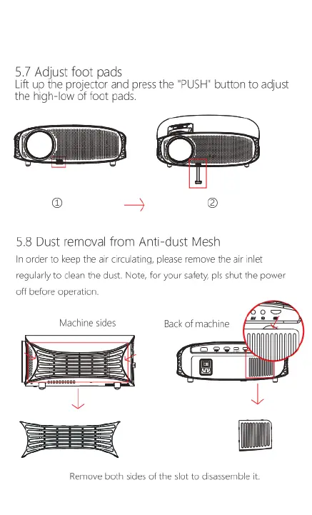 GOODEE YG600 - Foot Pad Adjustment; Anti-dust Mesh Cleaning