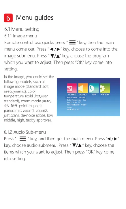 GOODEE YG600 - Menu Guides; Image Menu Settings; Audio Menu Settings
