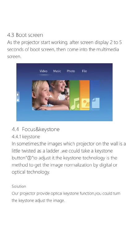 GOODEE YG600 - Boot Screen and Interface Navigation; Keystone Adjustment