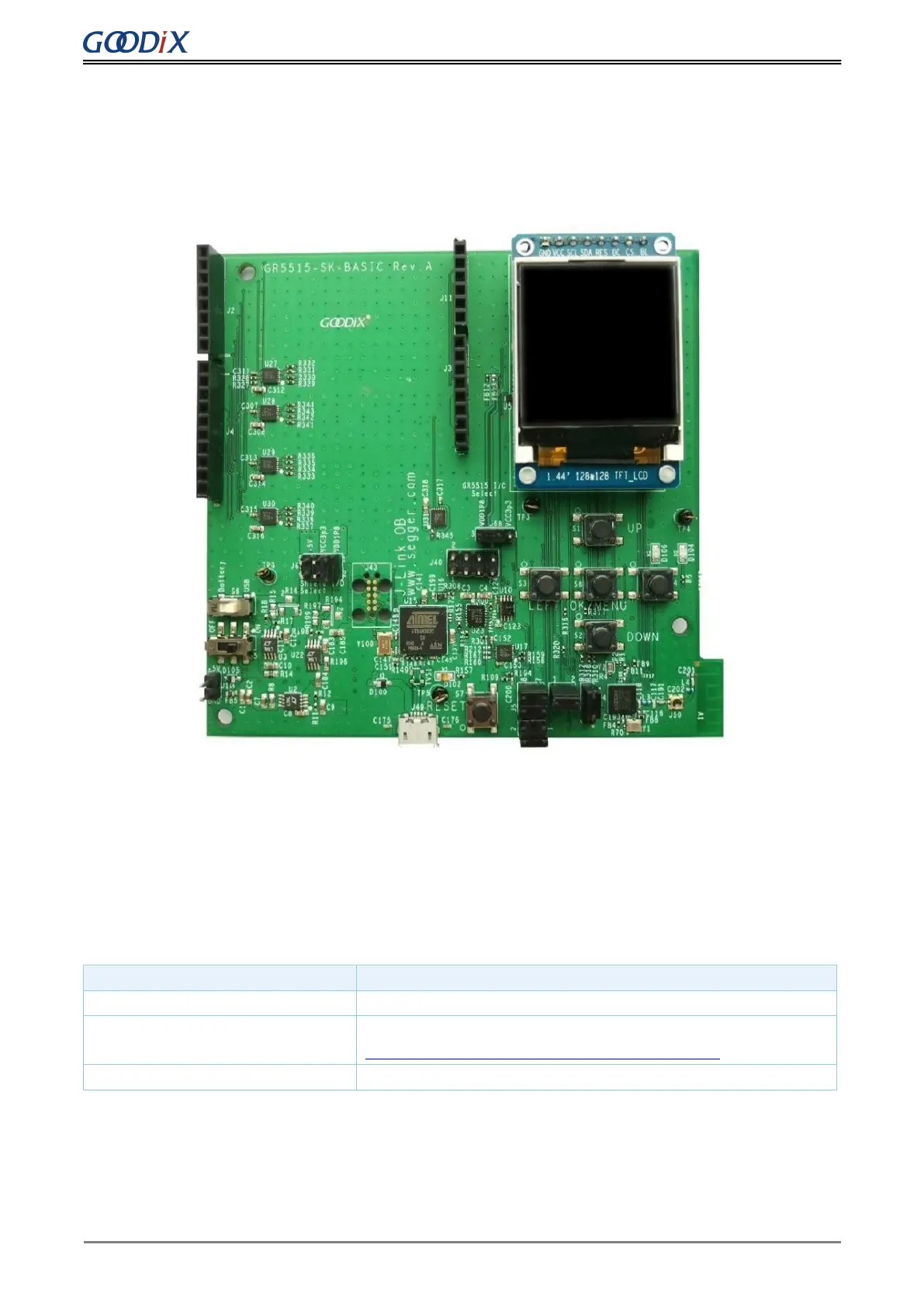 SK Board, a schematic diagram, and a user guide. The GR5515 SK allows you to get familiar with GR551x-related