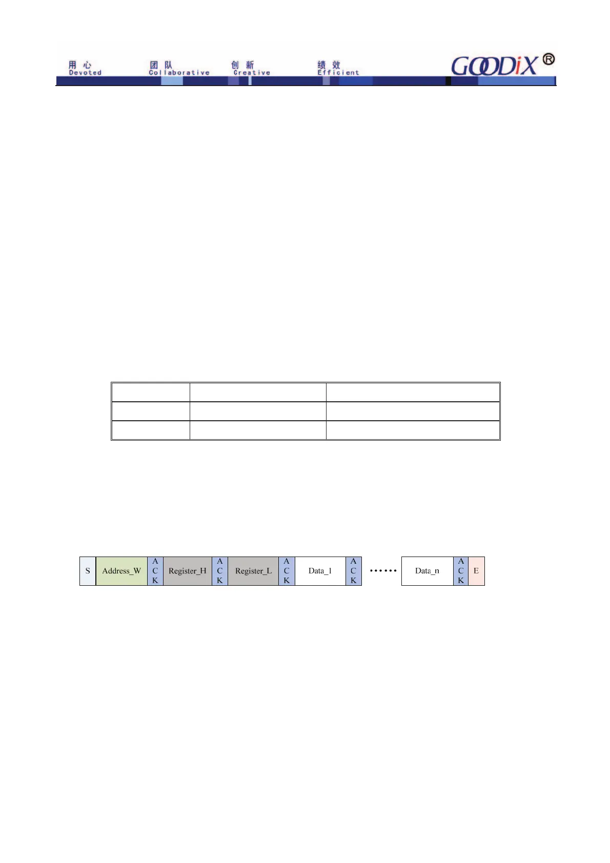 time. GT911 will automatically increase the address of register and store the data bytes in sequence.