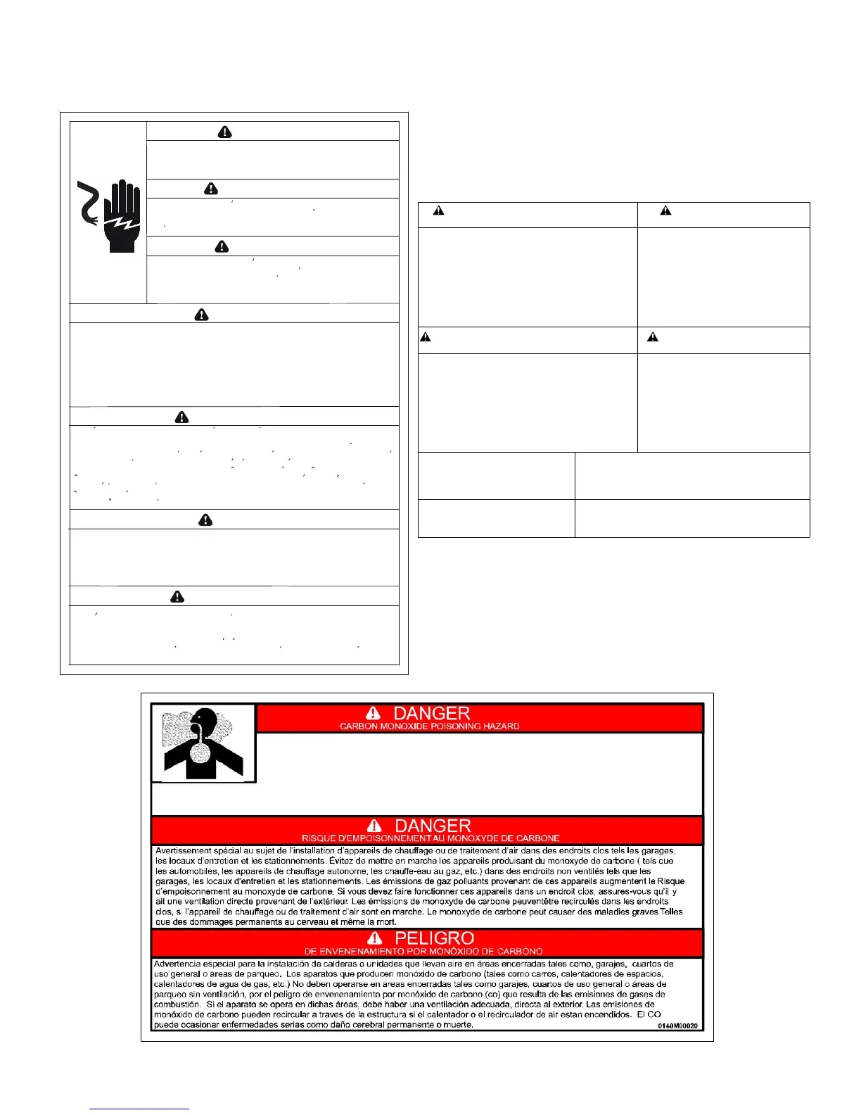 Special warning for installation of furnaces or air handling units in enclosed area such as garages, utility