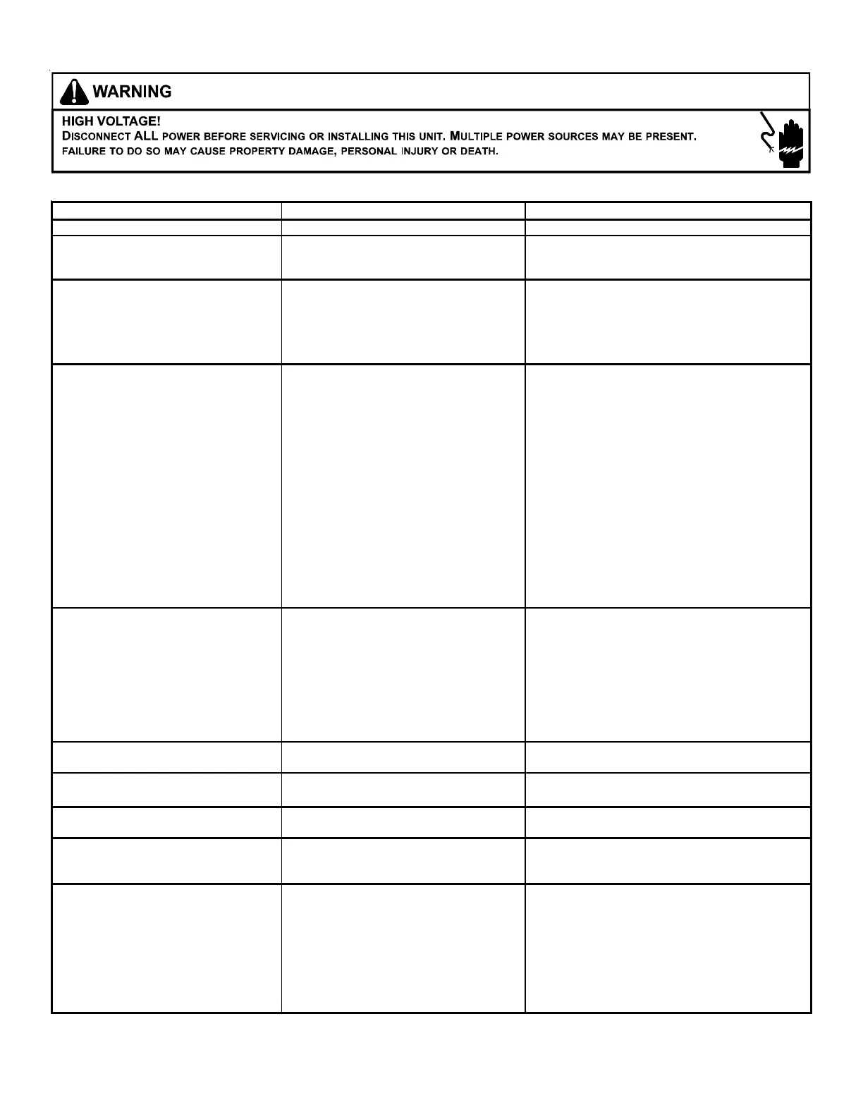 a. Power off or loose electrical connection a. Check for unit voltage at contactor in unit.