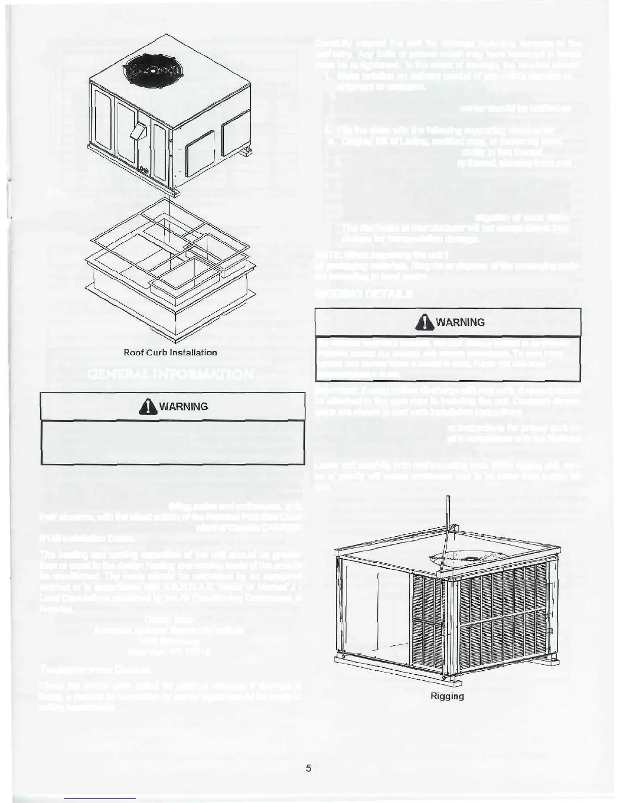 Lower unit carefully onto roof mounting curb. While rigging unit, cen-