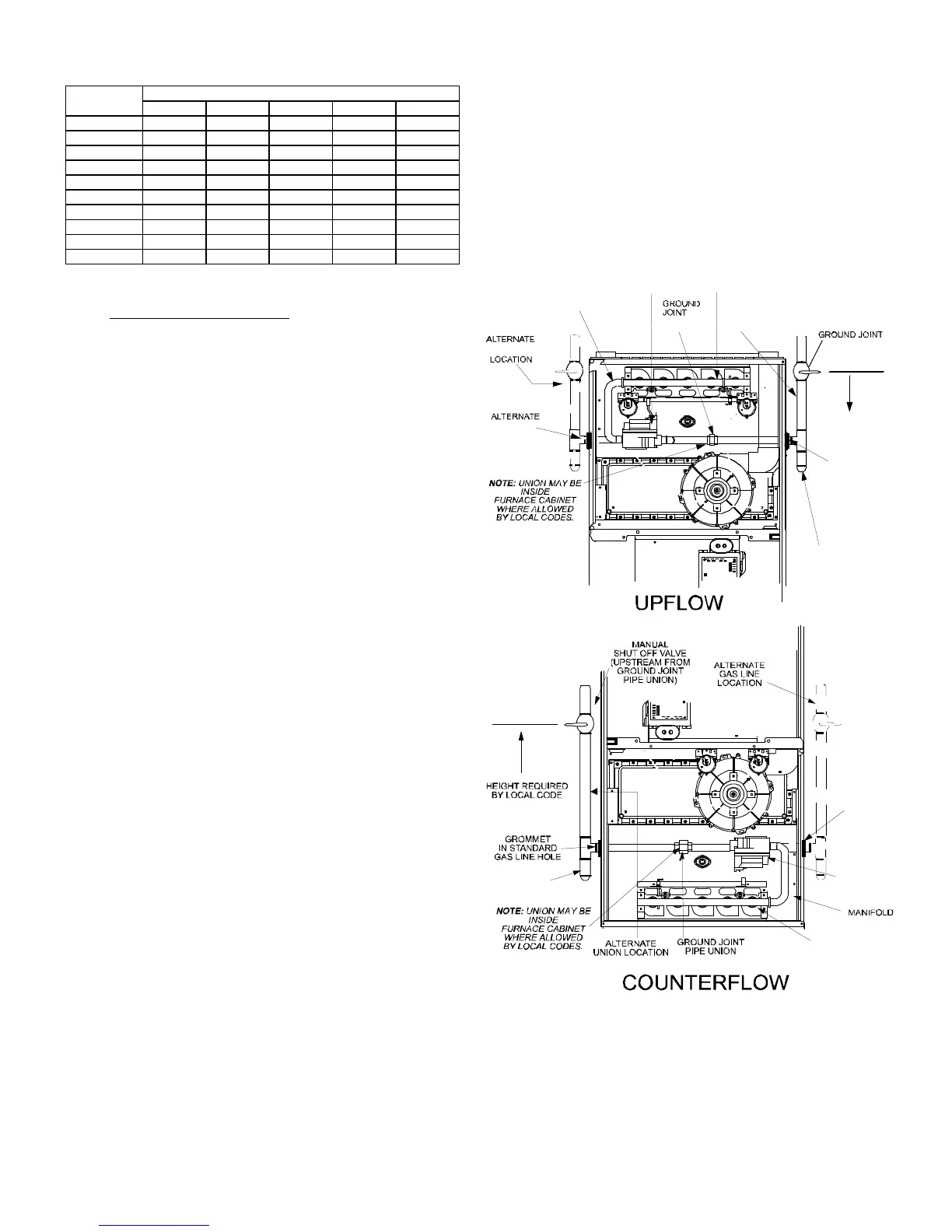 • Gas piping must be supported external to the furnace cabinet