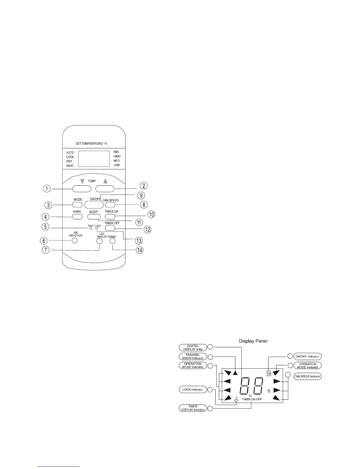 Goodman MSG-12CRN1N - REMOTE CONTROL; REMOTE CONTROL OPERATION AND FEATURES; Remote Control Buttons and Functions; Display Panel Features