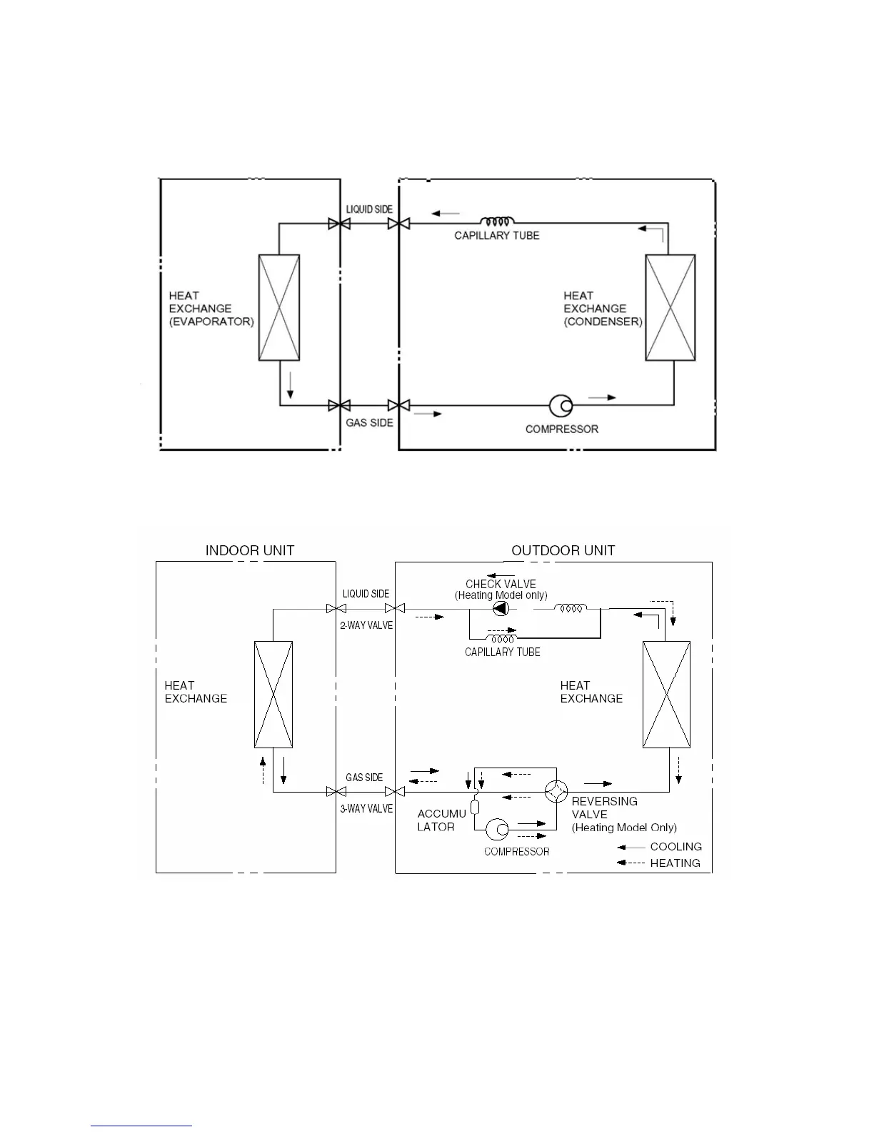 to a minimum outdoor ambient temperature of 16°F (-9°C). The indoor side may be operated in the heating mode with indoor