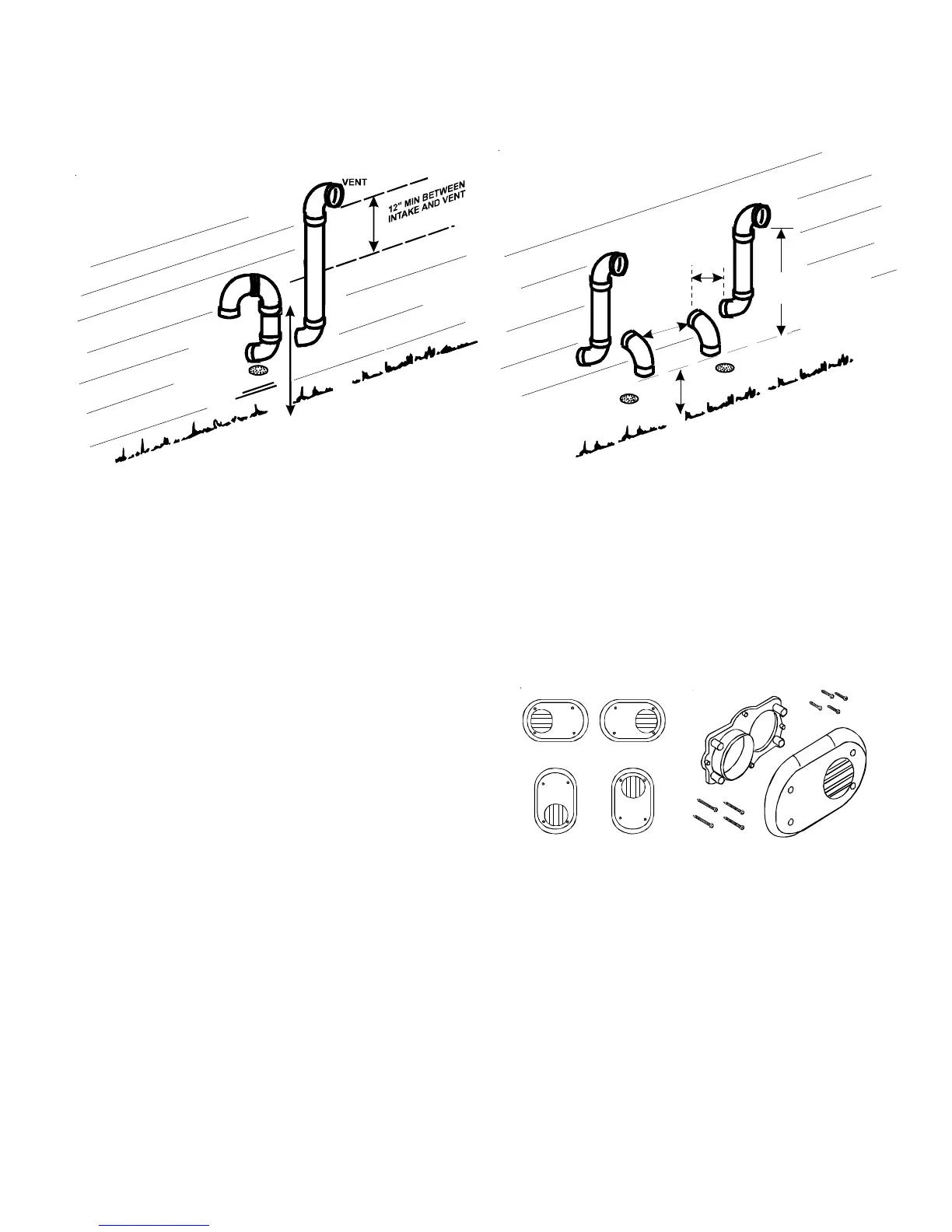 following figure. Always terminate all exhaust vent outlets at the same elevation and always terminate all air intakes at the same