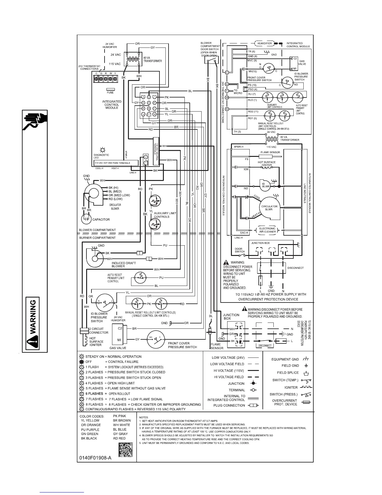 Wiring is subject to change. Always refer to the wiring diagram on the unit for the most up-to-date wiring.
