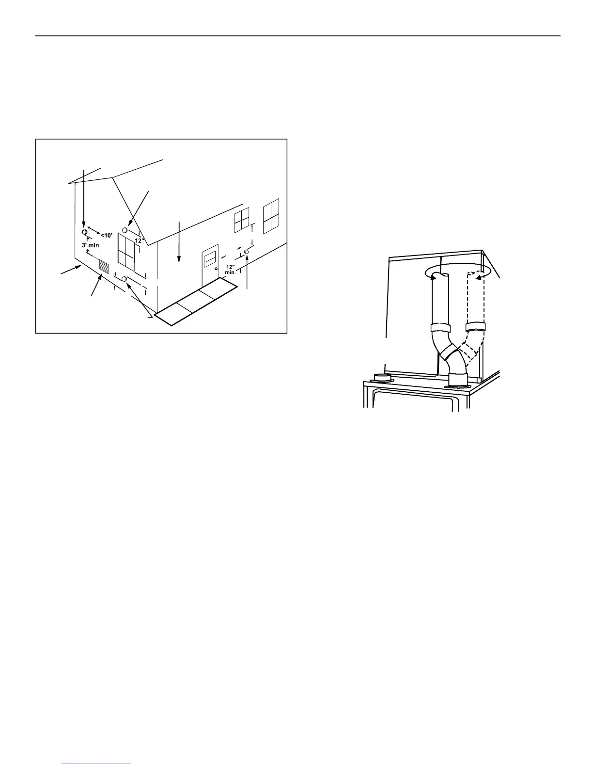 NOTE: For non-direct vent installations, a minimum of one 90°
